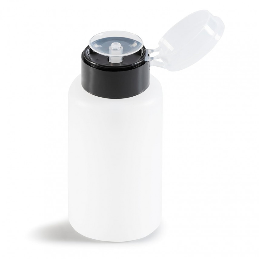 Doskonałej jakości dozownik z pompką do wszystkich płynów kosmetycznych ( cleaner, zmywacz, aceton, remover, płyn do demakijażu, tonik do twarzy) o pojemności 200 ml. Dozownik nadaje się również do wielu innych płynów. Dzięki niemu w bardzo łatwy, szybki i higieniczny sposób nawilżysz wacik preparatem, bez zbędnej utraty płynu. Dozownik wykonany jest z półprzezroczystego tworzywa sztucznego, nie pęka ani nie rdzewieje i posiada nasadkę dozującą, która zapobiega utlenianiu i odparowywaniu płynów. Zapewnia bardzo wygodne aplikowanie płynu na wacik lub płatek kosmetyczny. Wystarczy docisnąć wacik do korka buteleczki, a zostanie on precyzyjnie i błyskawicznie nasączony. Ilość: 2 sztuki Pojemność dozownika : 200 ml. Kolor: mleczny przezroczysty, czarny kaptur.